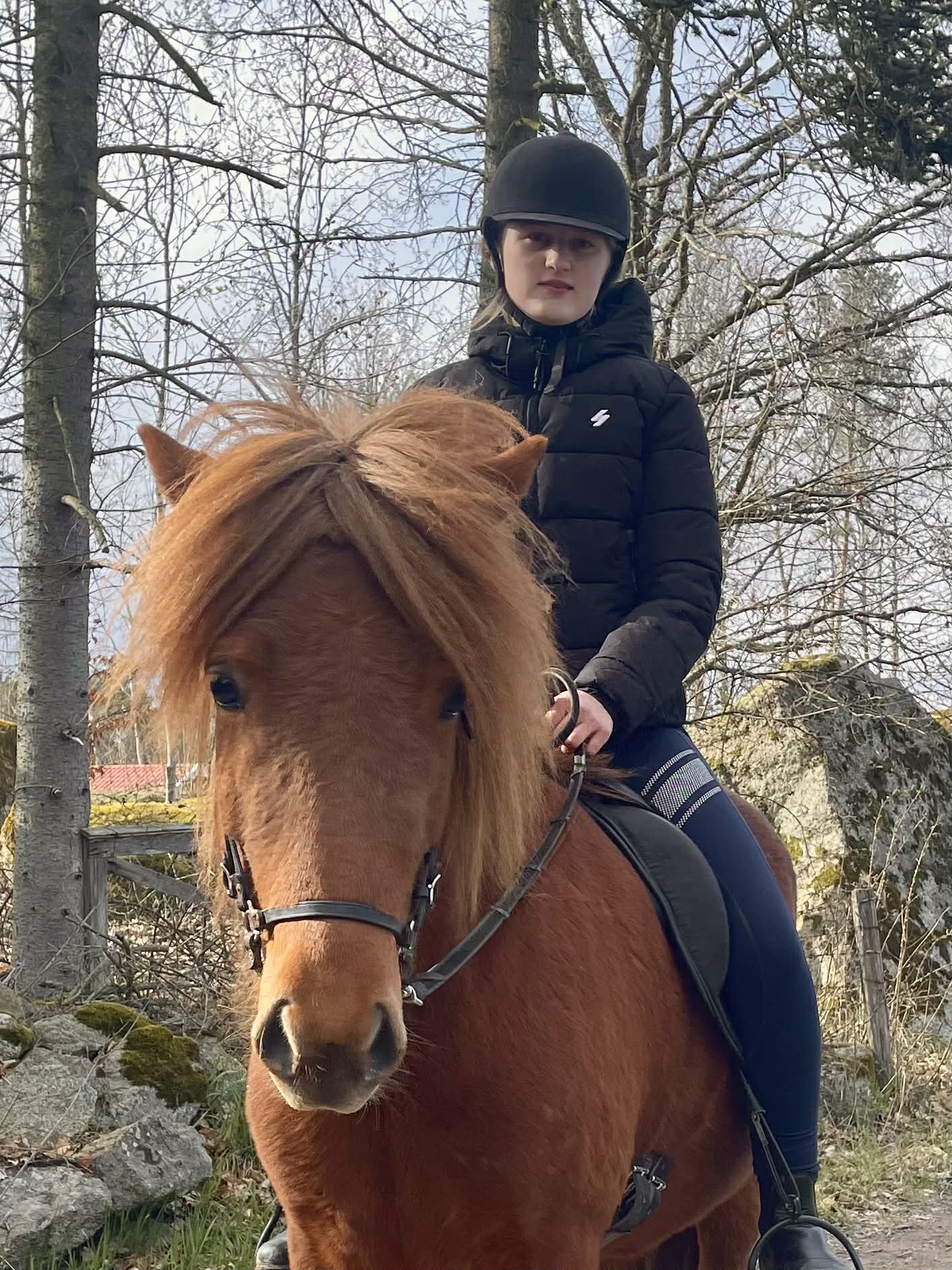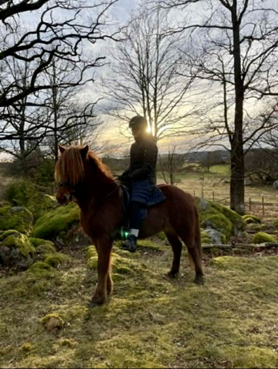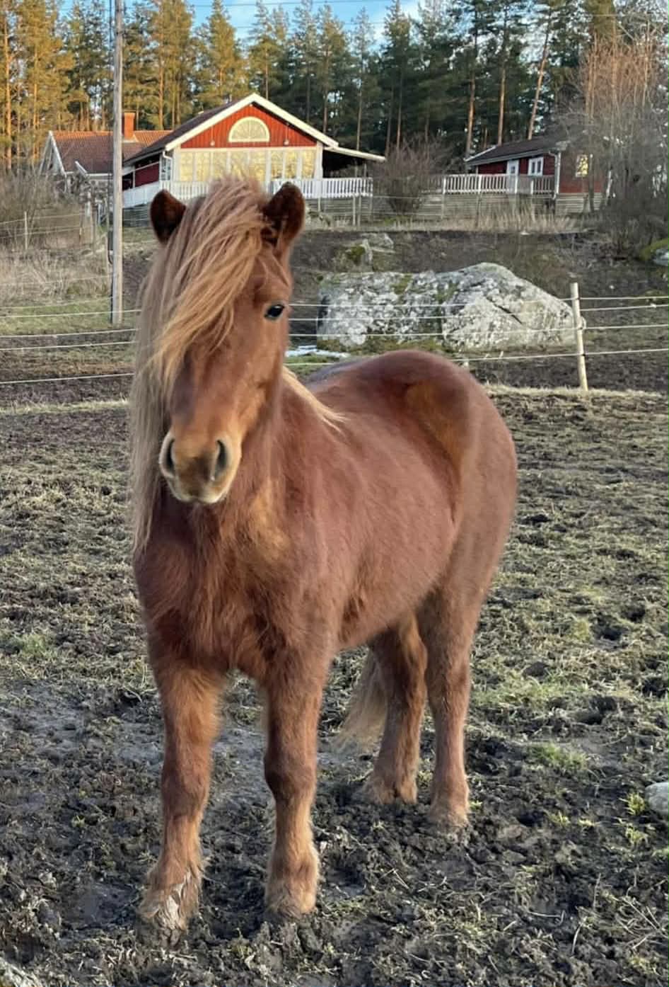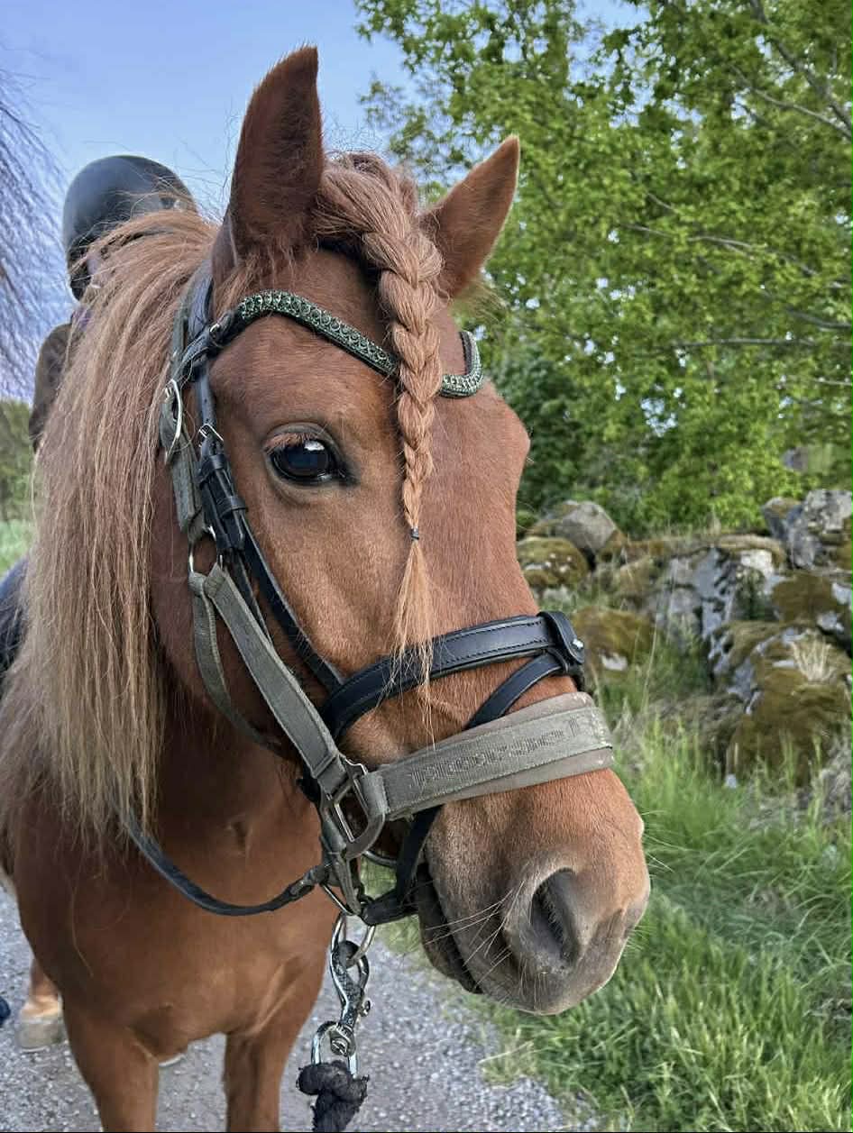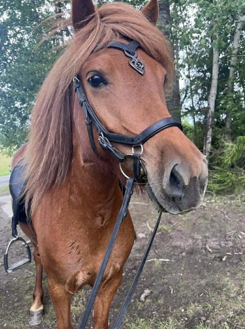 Ett rött sto med allt vad det kan innebära... Köptes då vi sökte genomtrygg "nybörjarhäst" men resan har varit lite skakig med många om och men, ska vi behålla? ska vi sälja? Överlag har stunderna varit fantastiska och känslan är att hon valt oss och vi hoppas och tror att hon kommer få bo kvar.